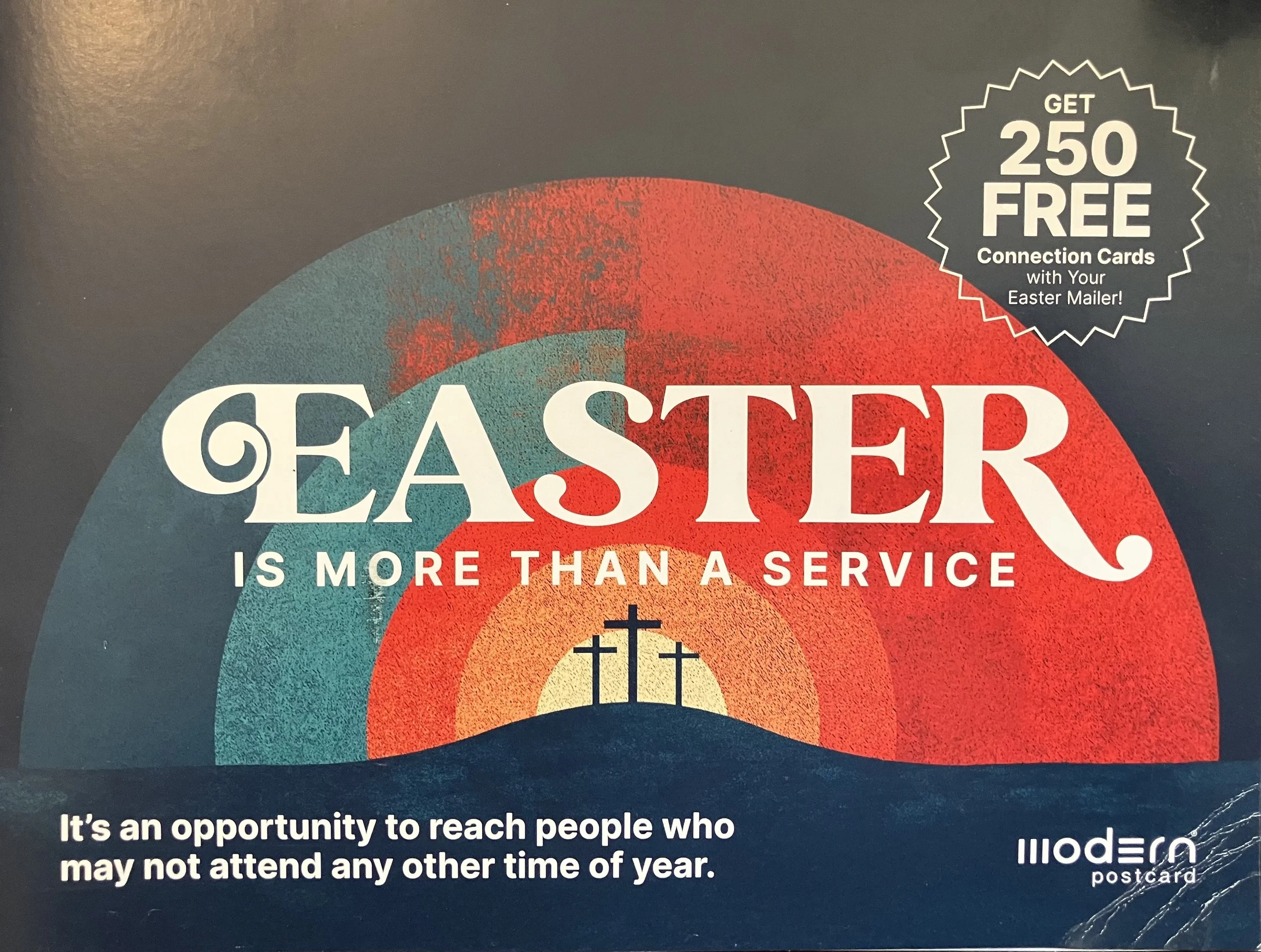 “It’s an opportunity to reach people who may not attend any other time of year,” says the six page glossy ad that I received today. Silly me. I thought it was a sacred feast day in which we remember and celebrate the resurrection of Jesus.